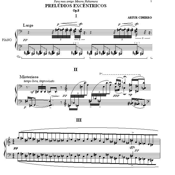 The idea of "Eccentric Preludes" is the same of the "bagatelle" in Beethoven times, but the freedom in composition nowadays can make the real eccentric music. The title is also a small reference to Vladimir Horowitz who composed an "Eccentric Dance" in his youth but became famous as pianist only. The first set of Eccentric preludes (Op.8) is very experimental. Musical ideas from small improvisations at the piano.